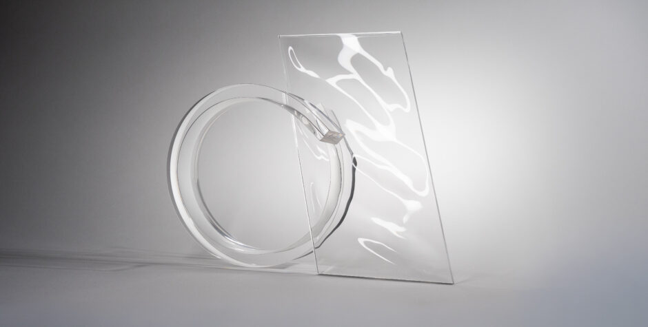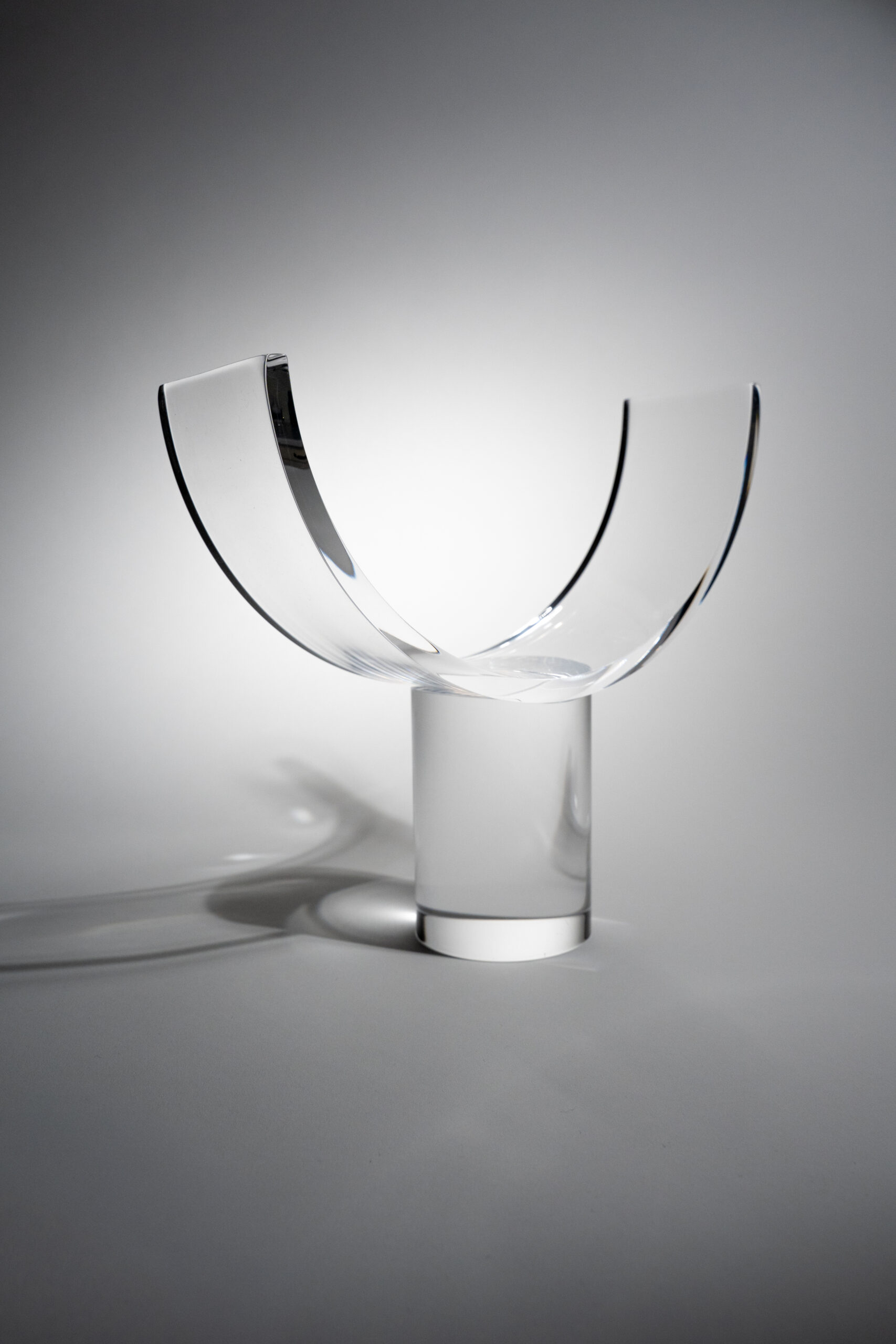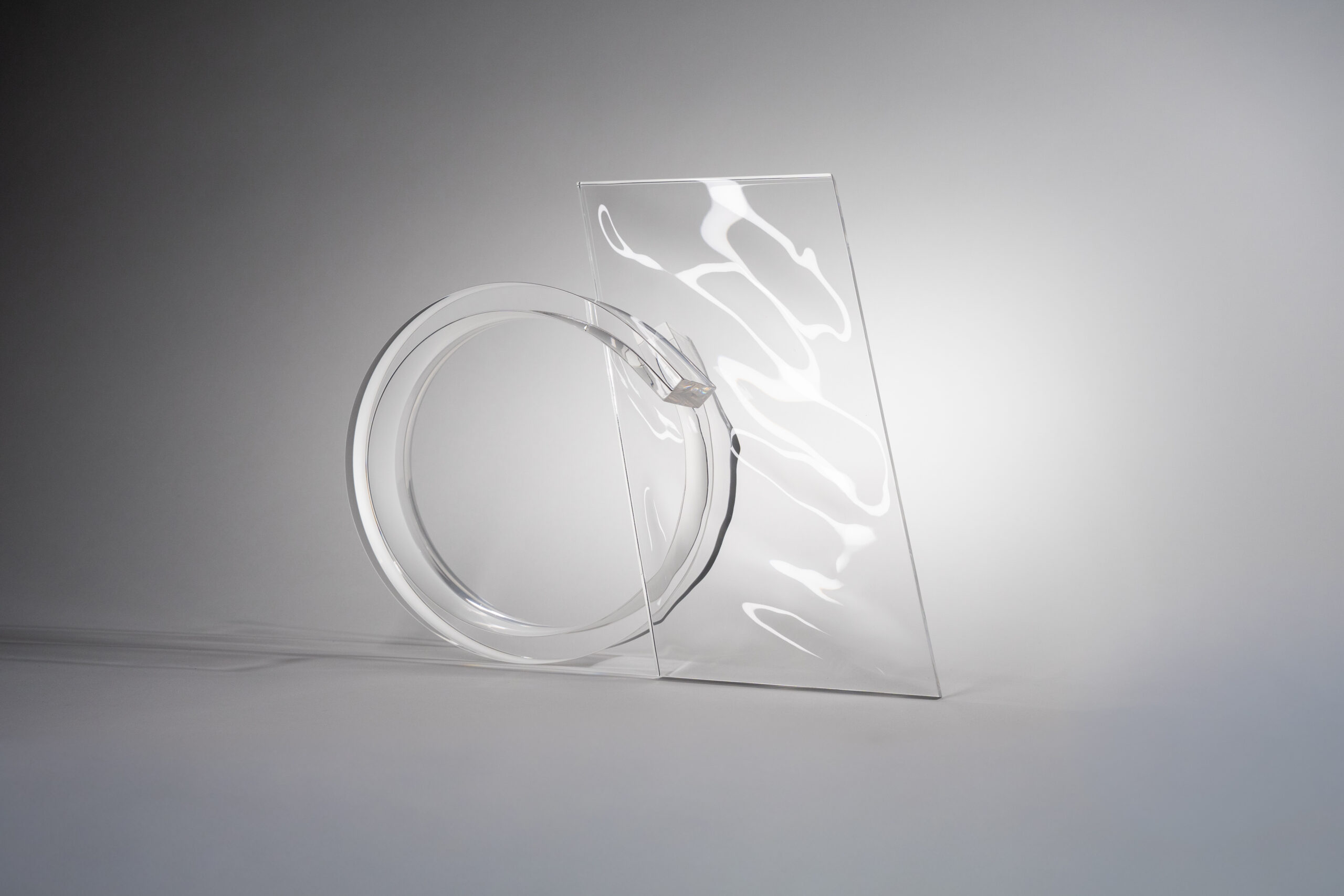 Per questo progetto abbiamo sviluppato insieme alla designer e stylist Luigina Pilloni una serie di forme in acrilico trasparente, progettate per dialogare con lo spazio espositivo attraverso leggerezza, rifrazione e purezza geometrica. Ogni elemento è stato pensato non solo come complemento o come materiale tecnico, ma come elemento capace di costruire ritmo e profondità all’interno dello stand.
